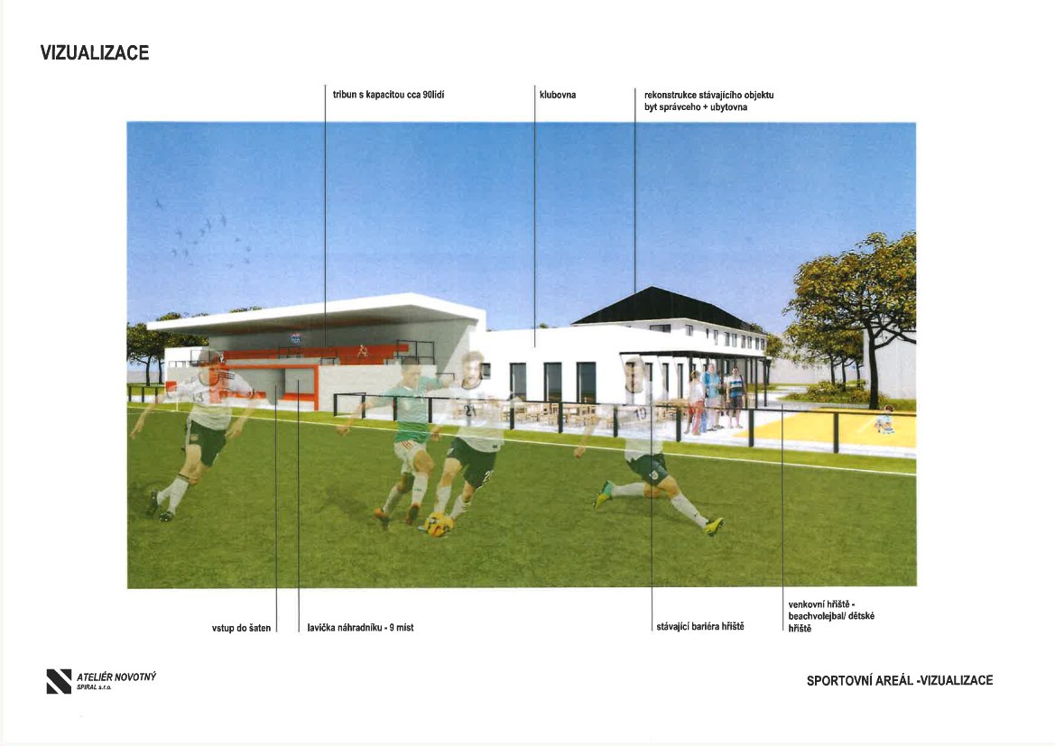 dodavatele na realizaci výstavby zázemí s tribunou ve sportovním areálu u fotbalového hřiště.